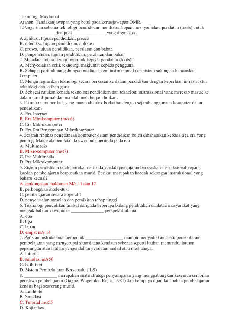 Berikut adalah benar tentang ciri-ciri RAM kecuali. Berikan sedikit rumusan berkaitan pengaruh penggunaan teknologi maklumat dan komunikasi di dalam pendidikan di negara kita. Ujian ini mengandungi 50 buah soalan yang merangkumi.